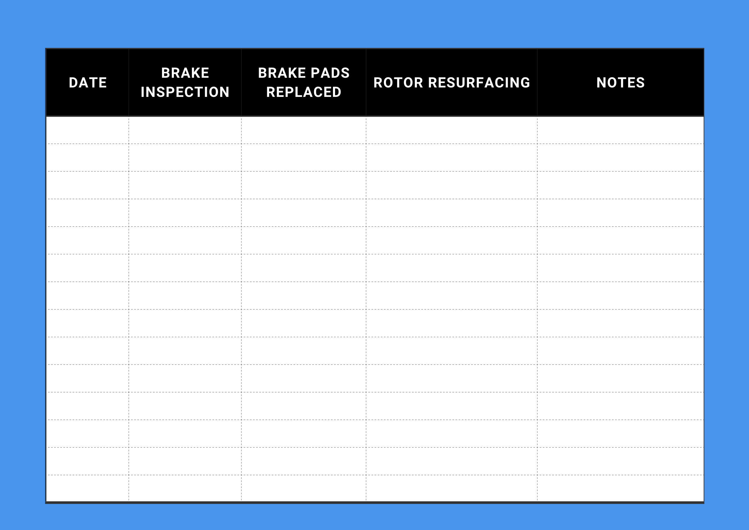 Brake maintenance enables you to document brake inspections, pad replacements, rotor resurfacing or replacements, and any other brake-related maintenance activities. By keeping a detailed log, you can monitor the condition of your vehicle's brakes and ensure they are in optimal working order.