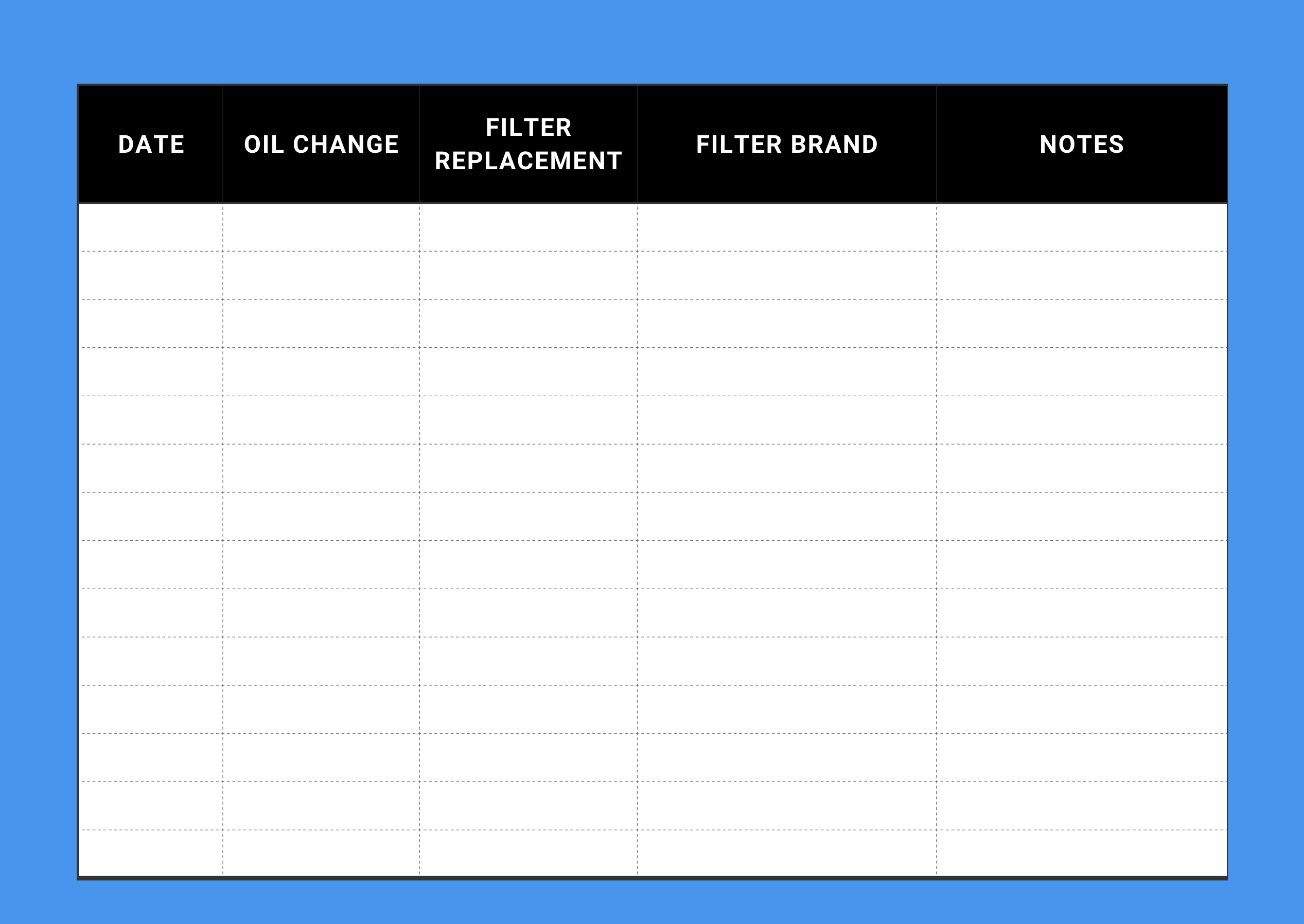 By maintaining a log specifically for oil filter and motor records, you can ensure that your vehicle's engine receives the necessary maintenance at the recommended intervals. This helps maintain optimal engine performance and prolongs the engine's lifespan.
